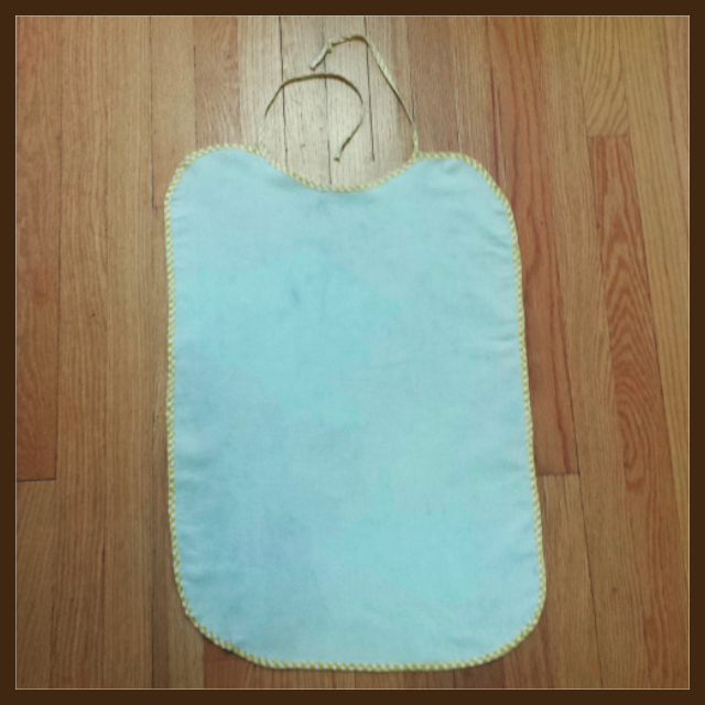 This is the original bib. I copied the pattern and cut the bibs before the class started so that all we had to do was sew the bias binding.